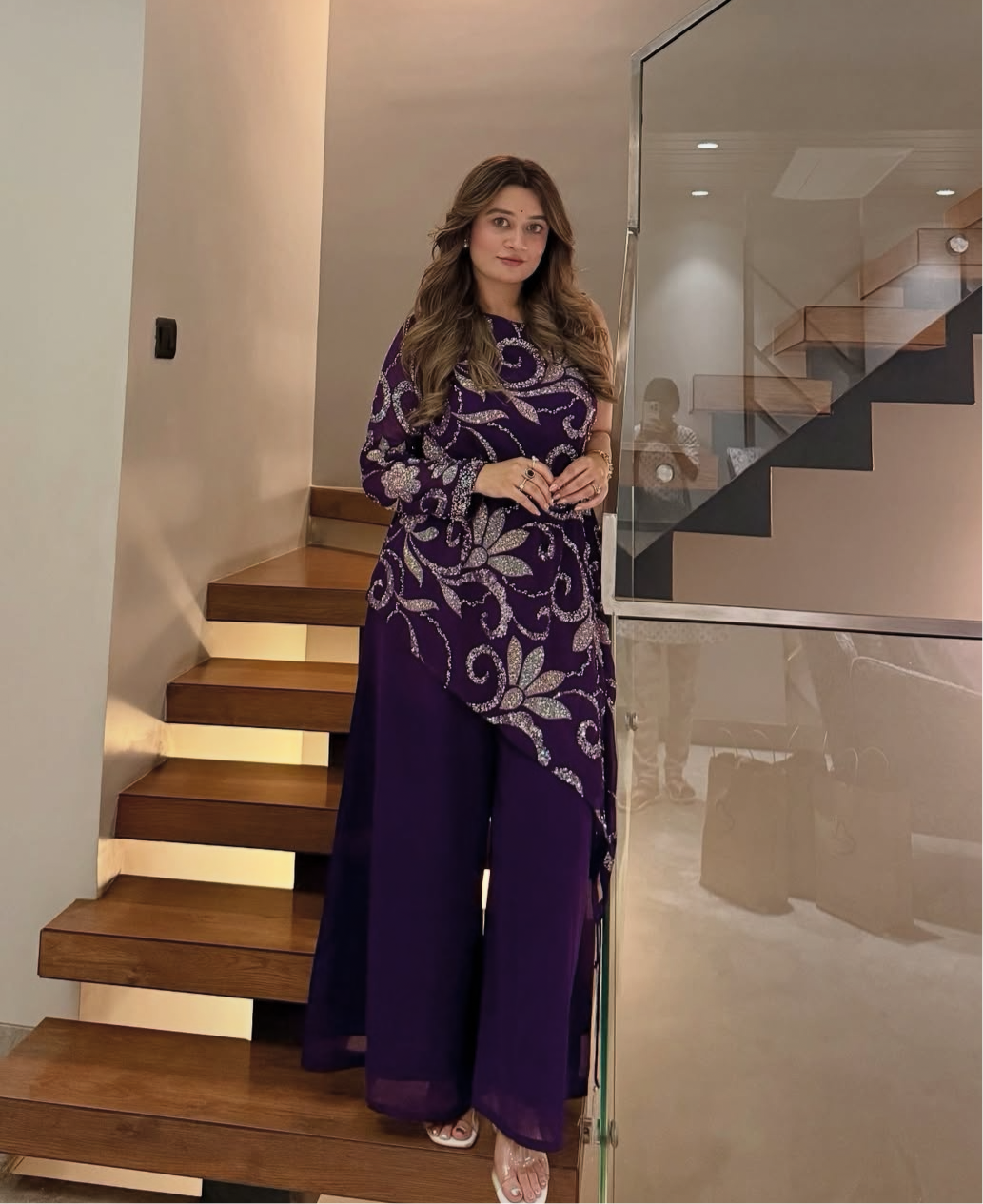 Elevate Your Style in our One Shoulder Hand embroidery 3 pc with plazo and belt